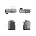Cage ini memiliki beberapa mounting point 1/4-20 dan 3/8-16 anti-twist, serta cold shoe di bagian atas dan bawah untuk memasang lampu atau mikrofon. Bagian bawah cage dilengkapi beberapa ulir 1/4-20 untuk pemasangan plate tripod. Terdapat juga slot strap di kedua sisi untuk memasang wrist strap atau neck strap (dijual terpisah).