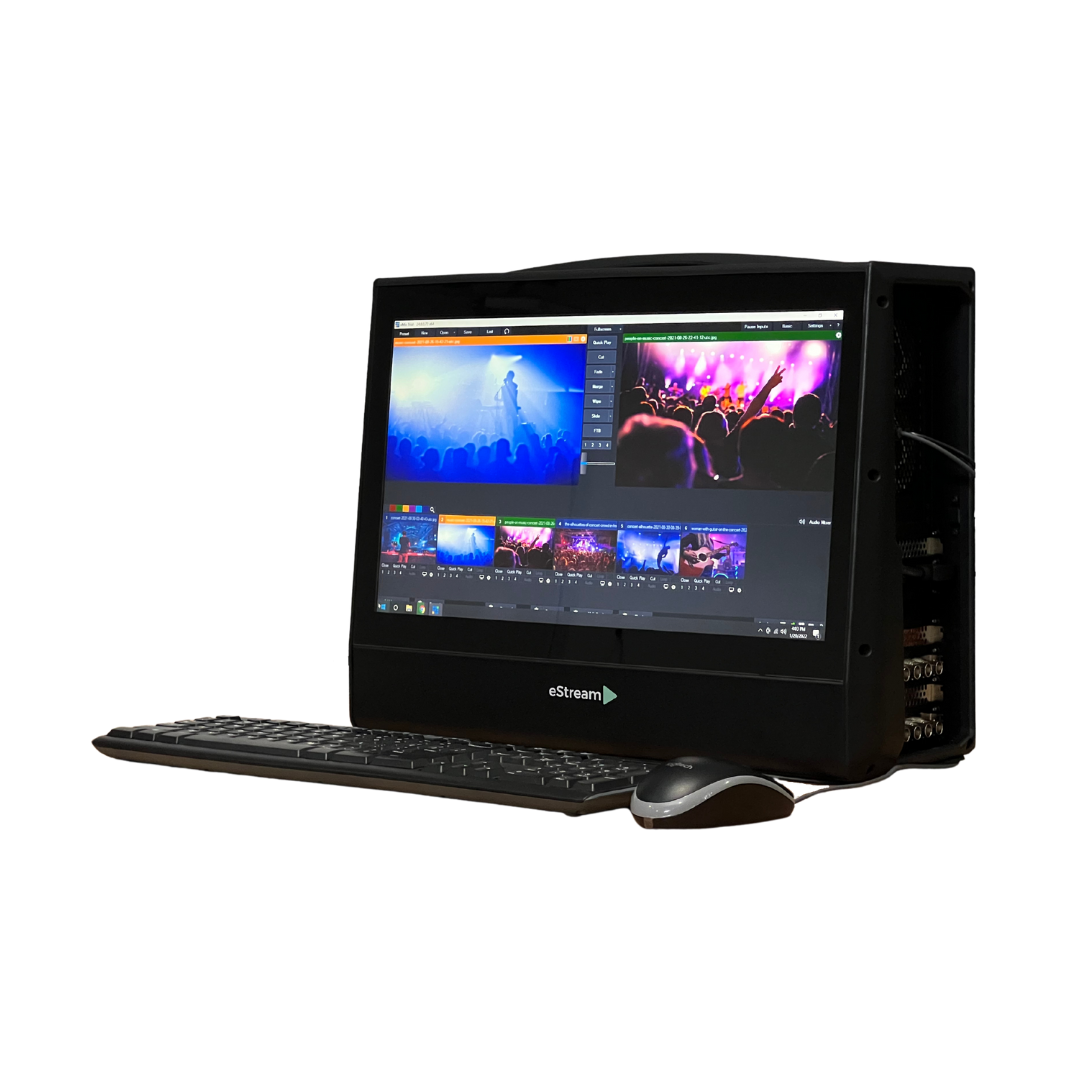 eStream menyediakan peralatan video production seperti kamera PTZ dan video mixer yang mengutamakan fleksibilitas dan efisiensi. Kamera PTZ yang mampu untuk pan, tilt, dan zoom otomatis ini ideal untuk live streaming, house of worship, corporate event, ruang meeting hybrid, hingga studio broadcast.